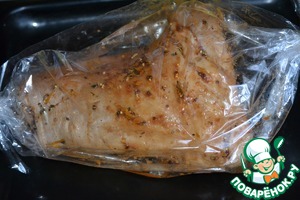 Возвращаемся к рульке. Хорошо промаринованную рульку помещаем в рукав для запекания и ставим в духовку примерно на 2 часа при температуре 190 градусов.