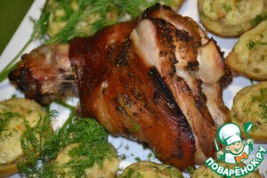 Рецепт «Ароматная рулька с фаршированным картофелем»: