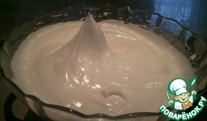 Взбить белки с 1/2 сахара (чем мельче сахар, тем лучше взобьются белки) до небольших пиков. -