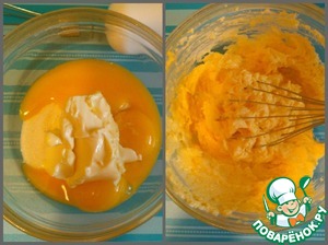 Желтки взбить с мягким маслом и оставшимся сахаром до пышности.