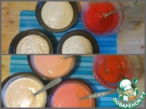 Т. к торт омбре (градиентное окрашивание, переход от темного к светлому), нам нужно окрасить наши коржи правильно.