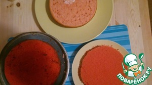 3 ч. л. окрашенного теста смешиваем с тестом для второго коржа. Средний корж.