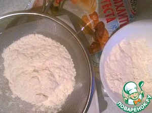 • В муку добавляем разрыхлитель и просеиваем 2/3 раза.