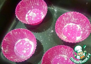 • Подготовим формы, смажем их сливочным маслом и припорошим мукой. Распределим тесто по формам и поставим в разогретую до 170град духовку примерно на 40мин.