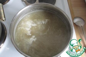 Ставим бульон на огонь. Если использовать воду, то нужно добавить в неё немного соли, лавровый листик, горошки душистого перца и ваши любимые сухие травки и специи.