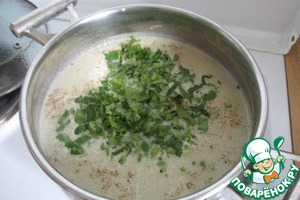 Снимаем с огня и всыпаем зелень. Накрываем крышкой и настаиваем минут 15.