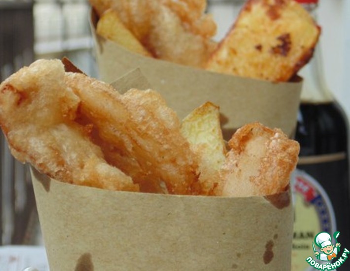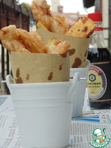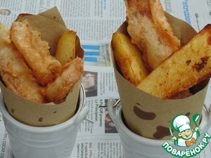 В субботу вечером предлагаю посмотреть хороший фильм и на ужин приготовить Fish and chips- сочную рыбу, замаринованную в соевом соусе в хрустящей панировке и запеченный пряный картофель. Не забудьте охладить пиво!! Очень вкусно!!!