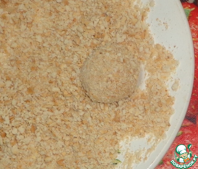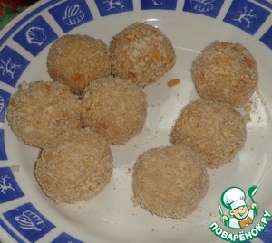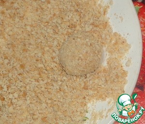 Из полученного фарша делаем небольшие шарики. Обваливаем в панировочных сухарях.