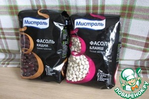 Я использовала в рецепте два вида фасоли - красную Кидни и белую Бланш ООО "Мистраль". Заранее сварила по стакану фасоли, а потом отмерила 120 г фасолевой смеси. Можно использовать только один вид фасоли.