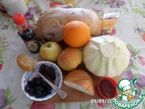 Подготавливаем продукты : моем птицу, фрукты и капусту.