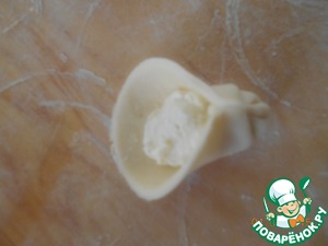 Положим в середину кружочка начинку и слепим курзе.