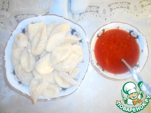 Вынимаем курзе из кастрюли. Курзе готовы, подаем с соусом.