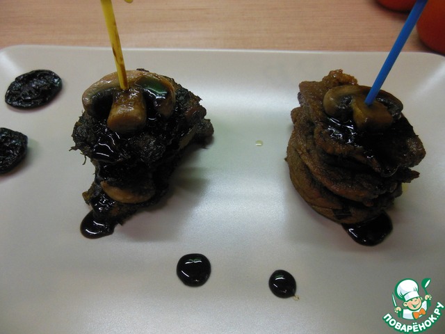 Получившимся соусом поливаем наши башенки. Всё, блюдо готово.