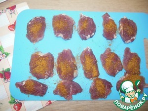 Затем опять кусочек мяса, и опять шампиньоны. И так смотрите, какой высоты Вы предпочитаете высоту башенки.