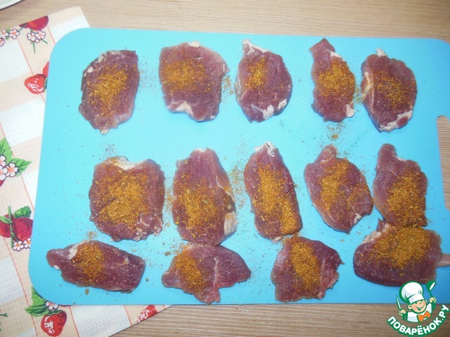 Каждый кусочек смазываем подсолнечным маслом, и выкладываем в миску. Накрываем и оставляем в сторонке мариноваться.