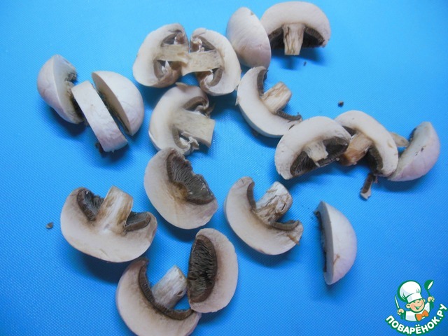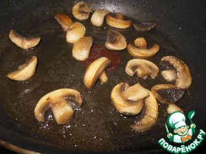 Пожарим шампиньоны на подсолнечном масле. Можно их немного подсолить.