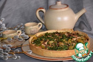 Заливаем пирог заливкой и ставим в разогретую до 190 градусов духовку на 40 мин. Начинка была полностью готовой, поэтому готовность смотрим по бортикам, они должны зарумяниться хорошо.