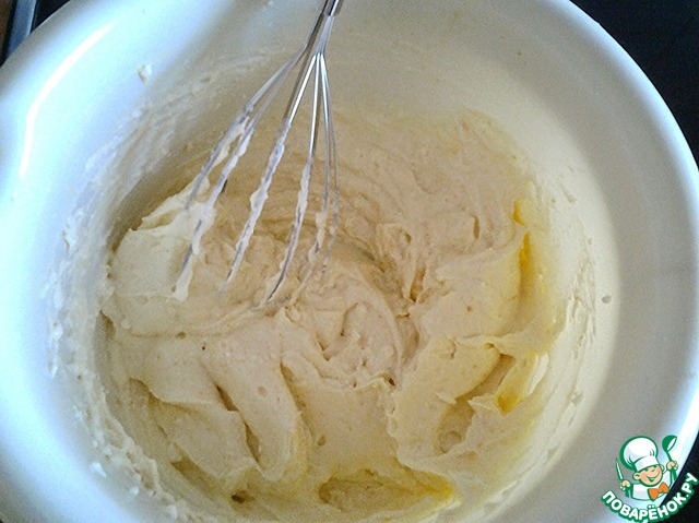 Затем стираем цедру с одной трети апельсина, добавляем ее и 100 г сметаны к творожной массе.