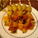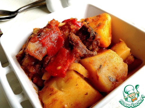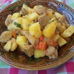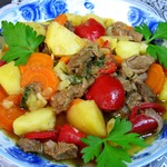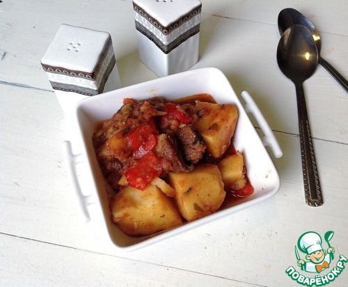 Хочу предложить вам очень вкусное и ароматное блюдо-соус грузинской кухни. Это тушеная картошка с мясом и обилием овощей. Ароматы витают потрясающие!