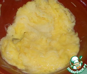 Картофель очистить и натереть на мелкой терке. Соединить с яйцом и перемешать.