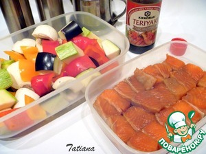 Ингредиенты для «Шашлычки из лосося с овощами и грибами»: