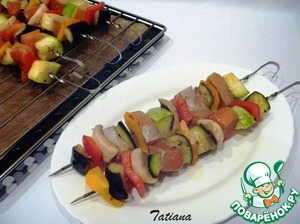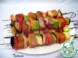 Рецепт «Шашлычки из лосося с овощами и грибами»: