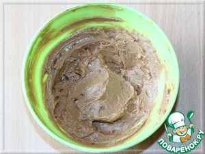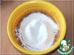 Вмешать просеянную с разрыхлителем муку (5 ст. л.). Хорошо перемешать и лучше миксером, так чтобы не было комочков. Тесто по консистенции, как густая сметана.