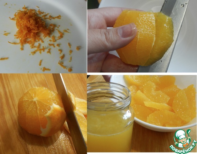 • Начнем с Апельсинов. Помоем, с одного снимем цедру.