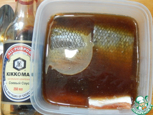• Закладываем рыбное филе в маринад кожей вверх, оставляем мариноваться на 1 час.