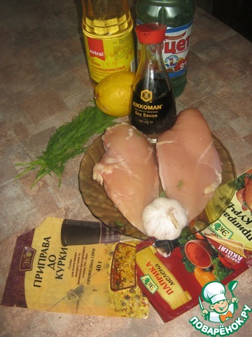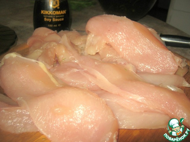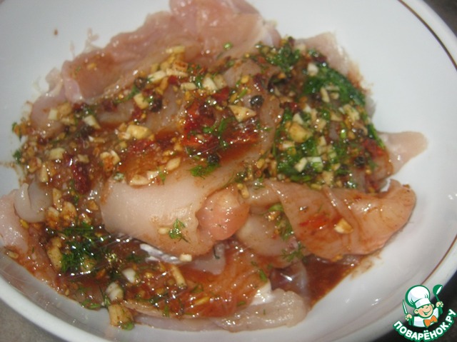 Смесью хорошо перемажем пластинки нарезанного куриного филе и оставим на 5 часов, лучше на ночь. Я оставляю с полдника до вечера
