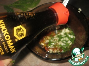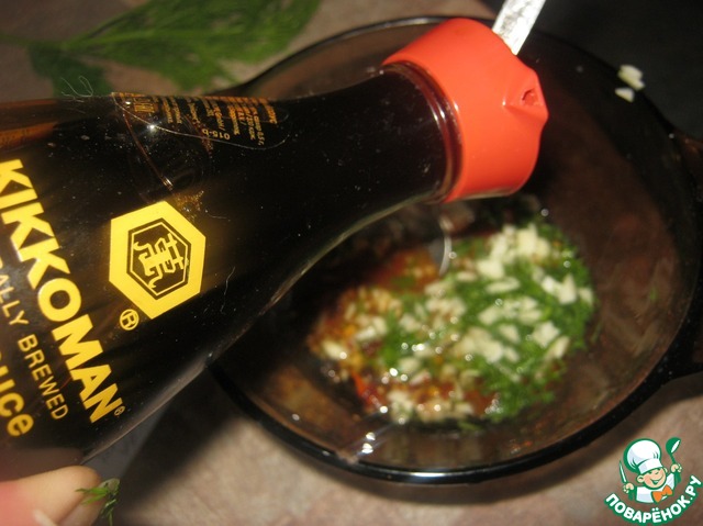Смешиваем чеснок, зелень и специи с соевым соусом ТМ "Kikkoman"