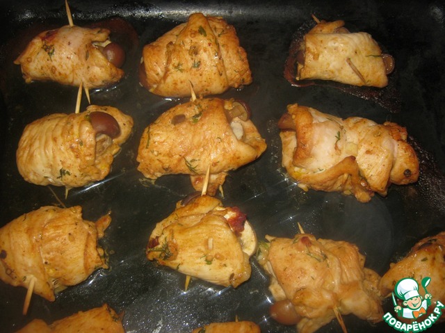 Выключаем духовку, оставляем ещё рулетики минуты на 2 в ней и достаём противень
