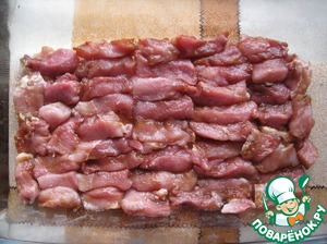 Форму для запекания смазать растительным маслом, выложить мясо.
