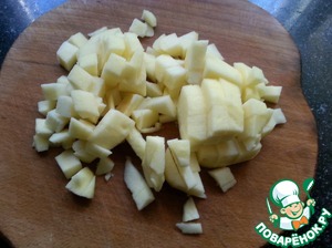 Яблоки очистить от кожуры, сердцевинки и порезать кубиками.