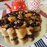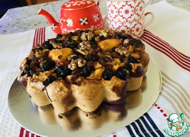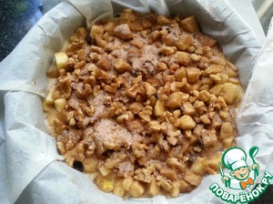 .во время выпечки сверху прикрыла фольгой, чтоб не горели орешки.