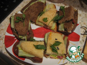Так как я использовала батон, бутерброды вышли "серьезными", поэтому я решила их поделить на 2 части!