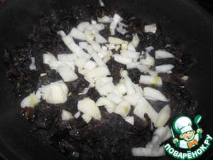 Грибы пожарить с луком. Немного посолить. Добавить специи для грибов.
