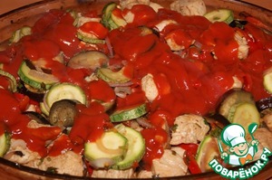 Хочу познакомить вас с еще одним из любимых моей семьей блюд из курицы, где главная роль отдана куриному филе, которое получается на удивление очень вкусным и сочным, а в качестве гарнира используются кабачки, баклажаны и томаты! Очень рекомендую - попробуйте и вы!