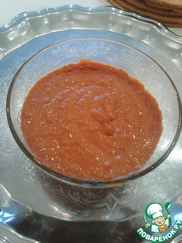 • Готовим коржи. Масло растопить на водяной бане, постепенно добавлять сахар, добавить мёд и топить почти до полного растворения сахара.