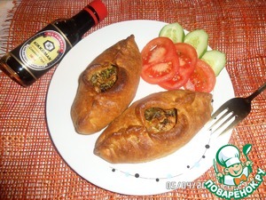 Придаем лепешкам форму лодочки, защипывая как пирожки, но оставляем центр незакрытым. Выкладываем на противень. Выпекаем 30-40 минут при 150-160 градусах. За 10 минут до окончания выпечки смазать желтком.