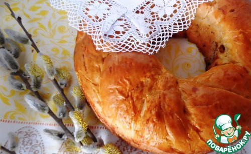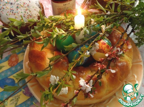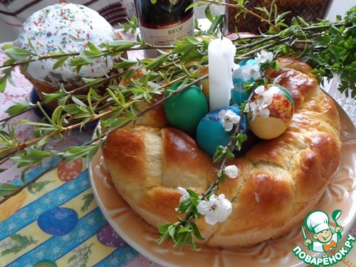 Я очень люблю дрожжевую выпечку. Идея приготовления такого венка пришла мне ещё в прошлом году на Пасху. Конечный результат порадовал меня и мою семью. Предлагаю и вам испечь такой сдобный "калач", тем более, что ингредиенты очень простые и процесс приготовления не сложный.