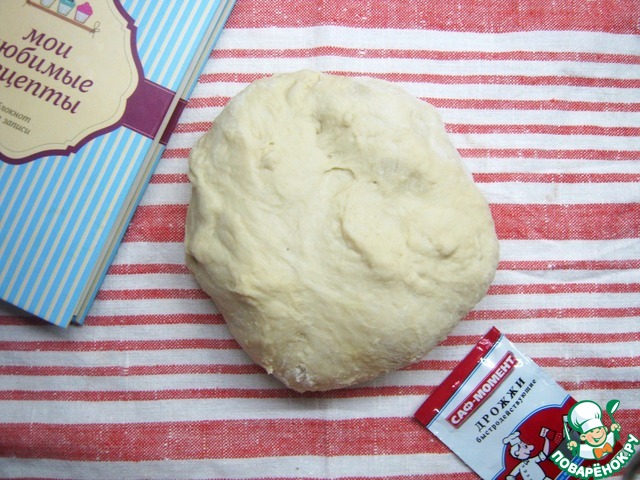 Замесите тесто и, прикрыв его полотенцем или плёнкой, оставьте на час в тёплом месте.