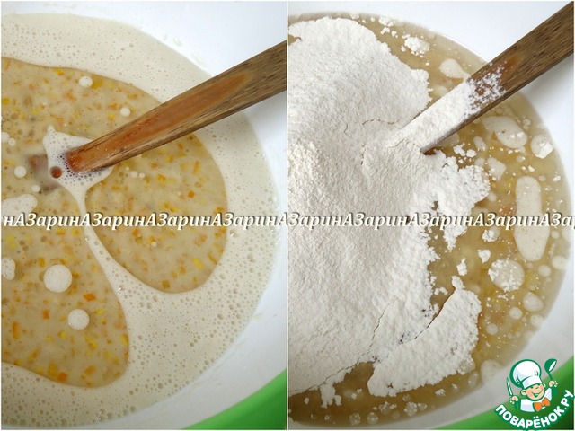 Перелить в чашу, добавить 1 ст. л. сахара и 0,5 ст. муки. Все хорошо перемешать и оставить на 5 - 10 минут.