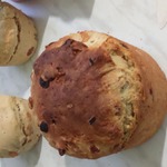 В опару добавить яйца, сахар, соль. Перемешать. Затем всыпать изюм, цедру апельсина и лимона.