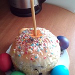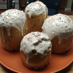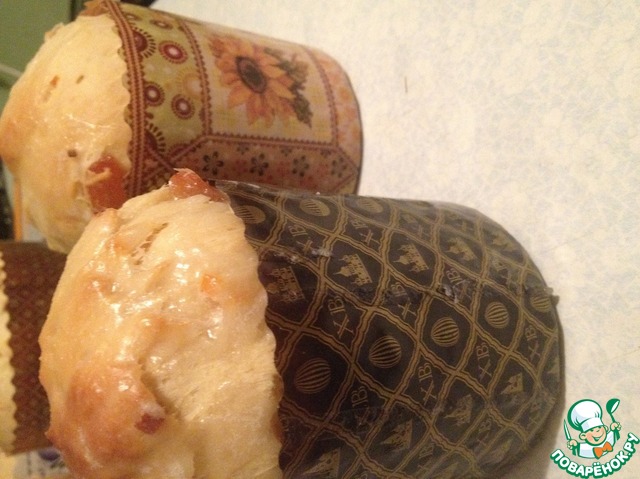 Выпекать куличи в заранее разогретой духовке при 180 град., время выпечки зависит от объема кулича. Я выпекала около 30 минут. -