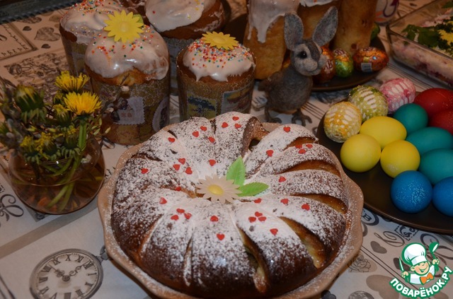 Поздравляю всех поварят со светлым праздником Пасхи! Предлагаю вкусный рецепт хлеба-пирога, который я испекла по мотивам рецепта из книги Ю. Высоцкой. Пасхальная выпечка - это всегда сдобное тесто и богатая начинка. Попробуйте!