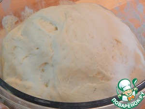 Формируем из теста шар, выкладываем в глубокую посуду, накрываем влажным горячим полотенцем и ставим в теплое место минут на 25-30.