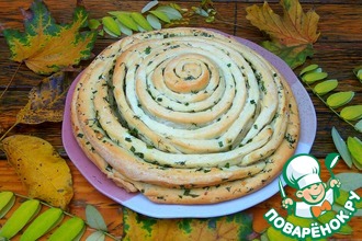 На кольце делаем надрезы примерно через 2-3 см, не прорезая до конца. Смазываем взбитым желтком и ставим в разогретую до 200 градусов духовку на на 15 минут, затем убавляем температуру до 180 гр. и выпекаем еще 15-20 минут.