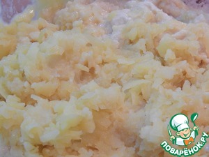 Поставить тесто подойти в тепло минут на 10. Картофель у меня желтее муки по цвету, выпечка получается пятнистой)