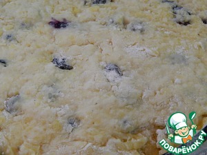 Затем добавить яйца, соль, оставшийся сахар. Хорошенько промешать тесто. Далее добавить натертый на терке картофель, подмешать к тесту; добавить изюм.